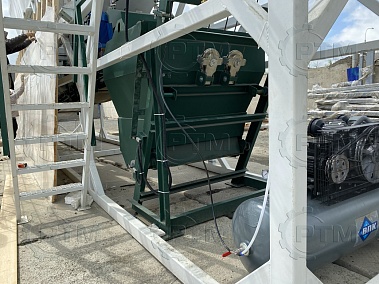Баки устанавливаются на раме, каждый бак имеет две дозирующие заслонки, на заслонку установлен пневмоцилиндр, он отвечает за открытие и закрытие заслонки. Так же бункеры оборудованы вибродвигателями Oli MVE/300 (Италия), они необходимы для встряхивания инертного материала.