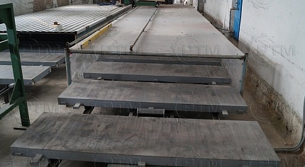 Материал: Конвейерные поддоны форм изготавливают из прочной стальной конструкции, которая обеспечивает долговечность и стабильность во время процесса формования газобетона. Металлический материал также обладает высокой устойчивостью к воздействию влаги и химических веществ, что делает их идеальными для работы с газобетонной смесью.