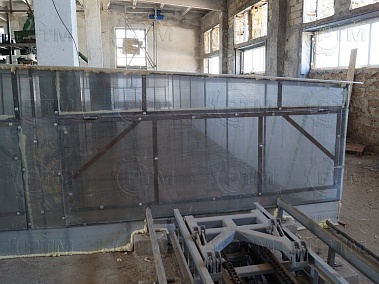 Толкатель электромеханический имеет жесткий каркас из швеллера 8П, конструкция крепится анкерами к бетонному полу. Имеется тележка, которая выполняет толкающую функцию. Перемещение тележки происходит при помощи червячного мотор- редуктора. Толкатель облегчает процесс работы на газобетонном заводе, перемещает конвейерные основания с массивами газобетона. Толкатель имеет функцию забора конвейерного основания с передаточной тележки. Тележка толкателя имеет ход вперед и назад. При включении толкатель захватывает конвейерное основание проталкивает на определенное расстояние, после нажатия концевого выключателя, включается обратный реверс и толкающая тележка возвращается в исходное положение.