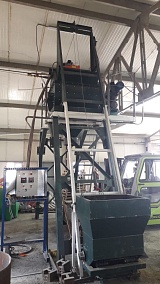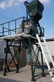 Данный завод состоит из жесткой рамной конструкции, двухвального бетоносмесителя на 450 литров по загрузке, скипового бака с весовой площадкой и лебедки для подъема инертных материалов.