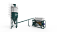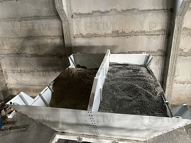 1. Дозирующий комплекс МБ-8 (2 секции по 4 м3): состоит из двух до четырех бункеров для хранения инертных материалов (щебень, песок, отсев). На каждом бункере имеется два пневмо- затвора, необходимых для точной дозации материалов. При дозировании материалы попадают на весовой ленточный конвейер, весовые датчики фирмы CAS Ю.Корея, при наборе нужного количества материалов, заслонки закрываются, подача прекращается. Объем каждого бункера от 2,5 м3 до 20 м3, в зависимости от комплектации завода. Каждый бункер оснащен вибродвигателем MVE 300/3.