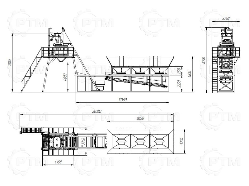 1.     Дозирующий комплекс МБ-36 (3 секции по 12 м3): состоит из двух до четырех бункеров для хранения инертных материалов (щебень, песок, отсев). На каждом бункере имеется два пневмо- затвора, необходимых для точной дозации материалов. При дозировании материалы попадают на весовой ленточный конвейер, весовые датчики фирмы CAS Ю.Корея, при наборе нужного количества материалов, заслонки закрываются, подача прекращается. Объем каждого бункера от 2,5 м3 до 20 м3, в зависимости от комплектации завода. Каждый бункер оснащен вибродвигателем MVE 300/3.