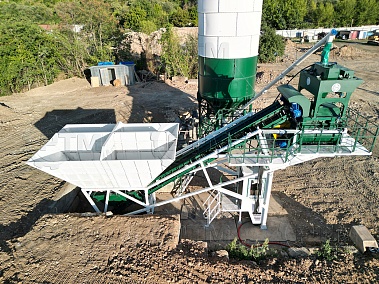 Мобильная рама ленточного завода предназначена для установки бетоносмесителя и блока дозаторов на высоте 4,5 метра, выгрузная заслонка на высоте 4 метра.