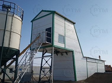 Данный завод производительность от 10 до 15 м3/час товарного бетона марки м200 или раствора. Объём загрузки бетоносмесителя 450 литров, объем выгрузки готового бетона 250 литров. Один цикл не более 55 секунд. Время работы цикла регулируется оператором бетонного завода.